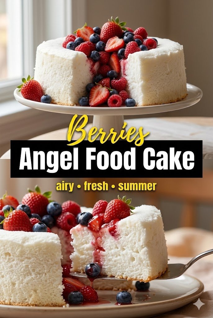 Enter the legendary [ Angel Food Cake with Fresh Berries ]. This stunning dessert looks like it belongs on the front page of a glossy culinary magazine, and I guarantee you can master it today. You just need a little patience, a clean bowl, and some aggressive mixing skills. Grab your favorite whisk, preheat your oven, and let us build an absolute masterpiece together. 🍰