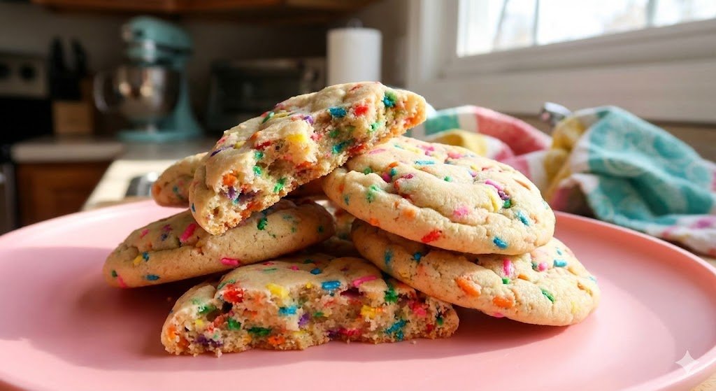 Use a Lemon Cake Mix instead of Funfetti. Add white chocolate chips and a tablespoon of lemon zest. Roll the dough balls in powdered sugar before baking for a crinkle cookie effect. 🍋