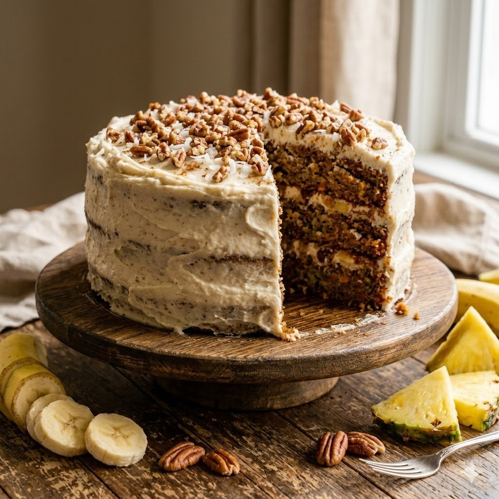 Most traditional fruit cakes taste like heavy, miserable bricks. I flat-out refuse to eat them. The Old-Fashioned Hummingbird Cake solves this texture problem through a brilliant moisture balance. π The fresh fruit naturally tenderizes the crumb, ensuring every single bite stays incredibly soft. You get a vibrant tropical vibe mixed beautifully with warm, comforting baking spices.
